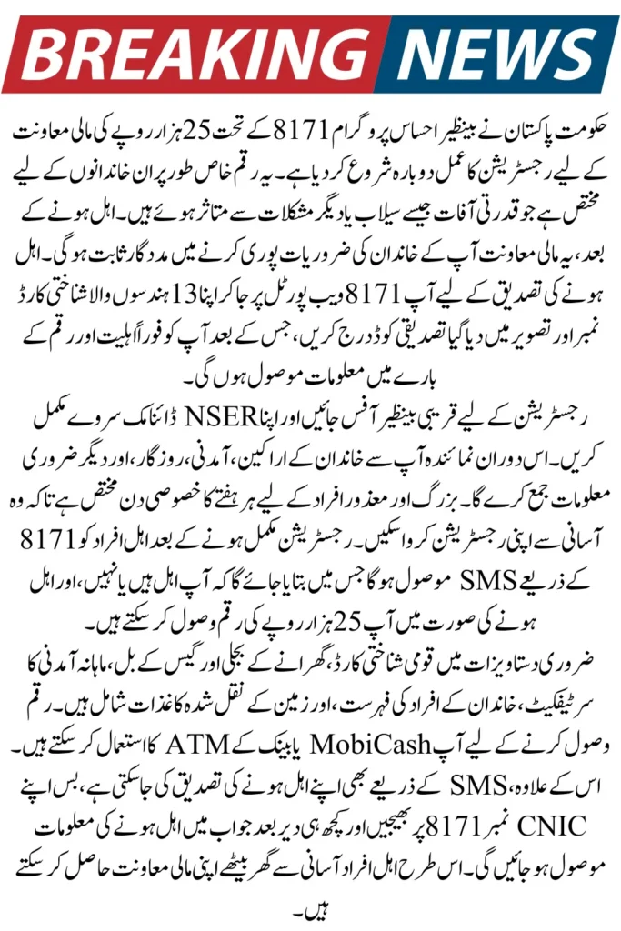 8171 check online 25000 procedure is easy now you check online registration of 25 thousand. The Government of Pakistan 8171 has announced the registration of 25 thousand rupees under the Benazir Income Support Program and Ehsaas Program 8171 while reviewing the inflation situation.