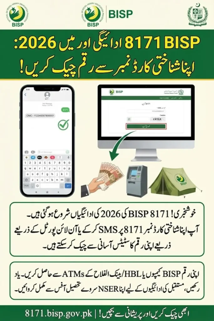 BISP 8171 2026 payment is a vital source of support for many families across Pakistan. By checking your payment status online or via SMS, you can quickly confirm your eligibility without stress. Make sure your CNIC and survey information are always up to date, and if you face any issues, don’t hesitate to contact your nearest BISP center.
