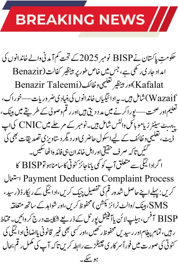 BISP November 2025 Payment Deduction Complaint Process