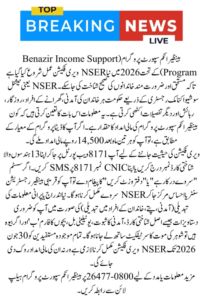 Completing NSER verification ensures continued eligibility for BISP support in 2026.