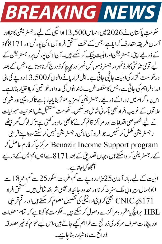 And get your online payment. Registration through NADRA was started by the Government of Pakistan in 2008. However, the online registration government will start in 2026. You have to read this article. You will be given information on how to get the money and check the new eligibility criteria.