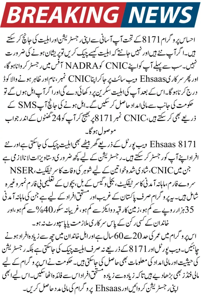 And now it is getting more attention than before. Now it has also increased to give financial funds to people so take advantage of the Ehsaas program and check your registration eligibility soon through your 8171. Eligibility can be done easily.