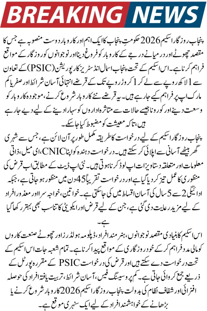 Punjab Rozgar Scheme 2026